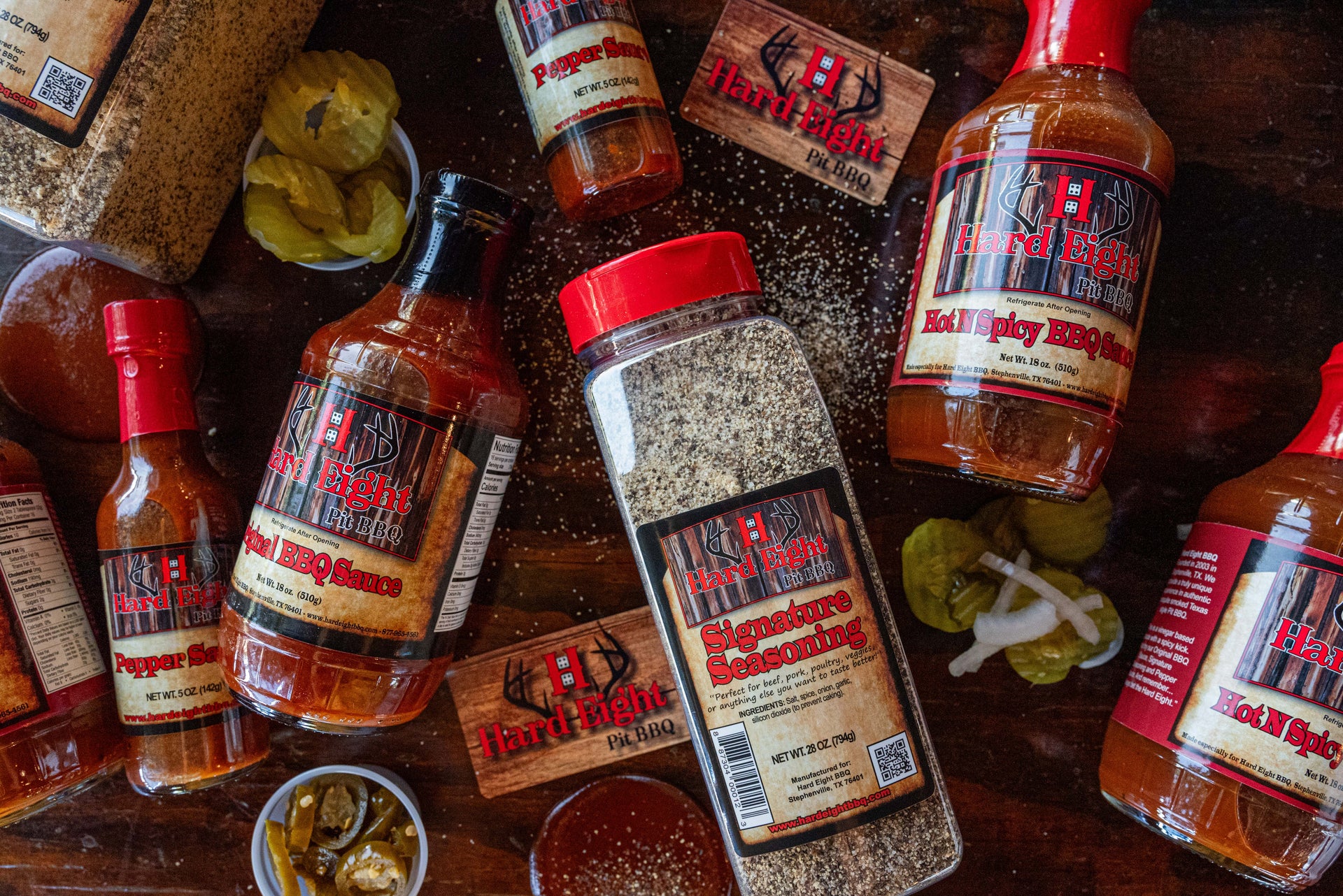 The Hard Eight BBQ Family enjoys sharing what they love: a fun atmosphere, delicious food, and some good 'ole Southern hospitality. Hard Eight offers an authentic dining experience where you will be served "Texas Style" straight from the pit by the Pit Master who prepared your food. You'll find everything from brisket to cooked-to-order ribeyes, house-made sides, and desserts using family recipes. A trip to Hard Eight BBQ is truly an experience! However, if you can't make it to the restaurant, the meats, sauces, and seasonings can be shipped nationwide.